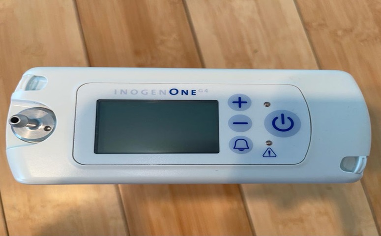 Lightweight and quiet, the portable oxygen machine inogen fits in a carry bag and runs on battery for hours.